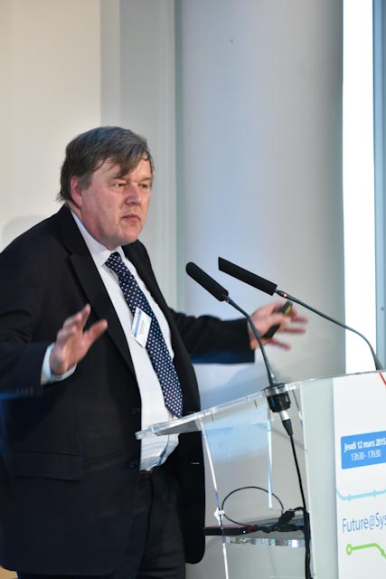 The plenary session continued with contributions from Patrick Godfrey, University of Bristol, Member of the Scientific and Technological Council of the IRT SystemX who gave his talk on “systems thinking”; and Gérard Berry, Professor at the Collège de France and CNRS gold medal 2014, who made a presentation on “How to have our smart ideas carried out by our stupid computers?